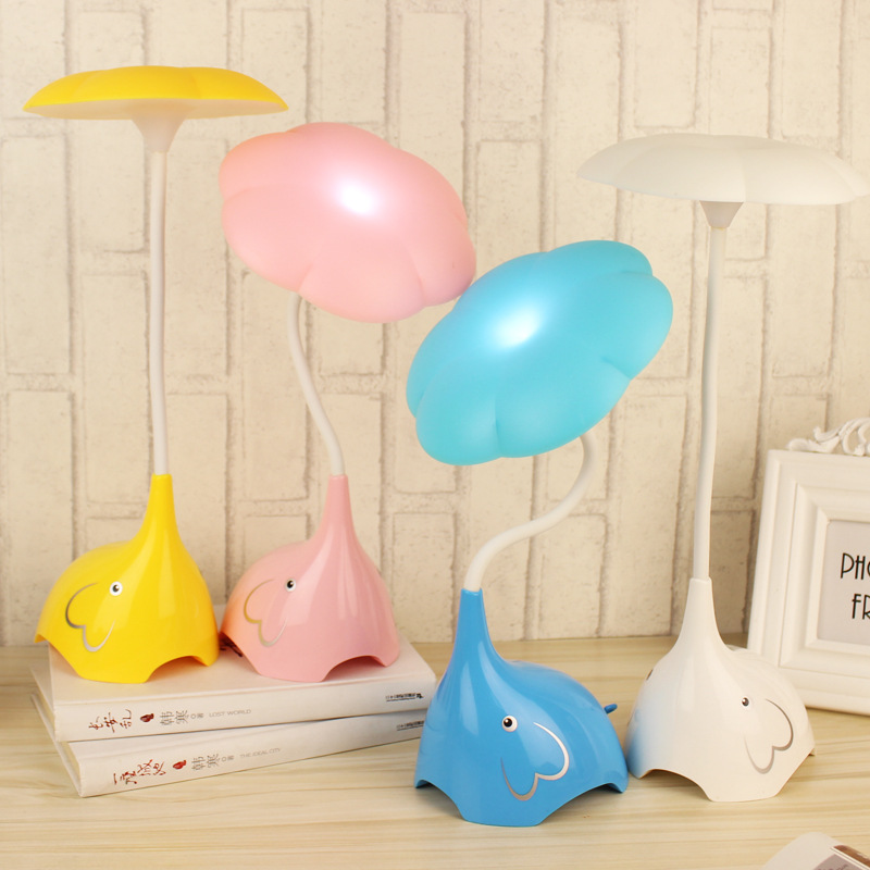 Lampu meja sentuh kartun TD112, pelindung mata belajar peredupan lampu meja gajah kamar tidur anak samping tempat tidur lampu baca
