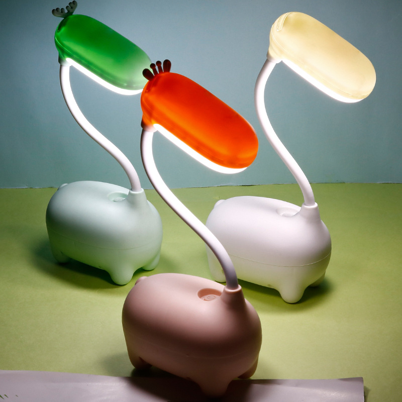 Lampu meja babi bulan lucu lampu LED pelindung mata kartun hewan belajar pensil rautan hadiah pelajar isi ulang membaca lampu malam