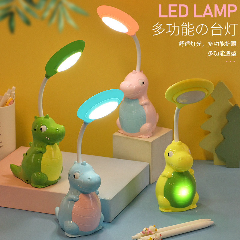 Lampu Meja LED Dinosaurus Lucu Kartun Model Baru Lampu Malam USB Pelindung Mata Belajar Kepala Tempat Tidur Anak-anak Meja Hadiah Siswa