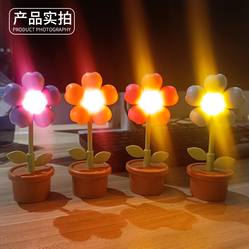 Lampu meja motif bunga kartun lucu, lampu dekorasi mini untuk meja asrama, lampu malam suasana, hadiah pencahayaan kreatif