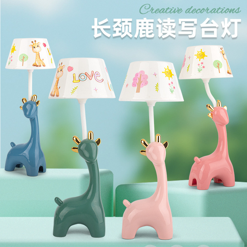Lampu meja LED jerapah mini kreatif kartun, pelindung mata pengisian daya meja suasana lampu malam lampu dekorasi perawatan