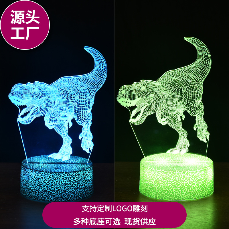 Seri dinosaurus khusus lintas batas lampu malam 3D warna-warni lampu sentuh LED remote control hadiah Natal kreatif lampu meja 3D
