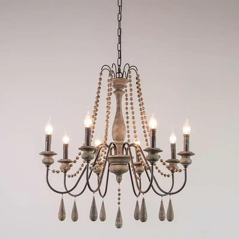 Lampu Gantung Kecil Samping Tempat Tidur Lampu Garis Bar Kamar Tidur Utama Kayu Solid Kepala Tunggal Desainer Gaya Prancis Retro Gaya Nanyang Abad Pertengahan