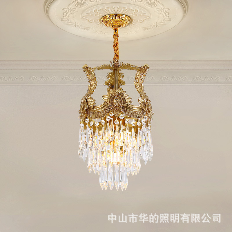 Lampu gantung tembaga gaya Perancis, lampu kristal suasana mewah villa gaya Eropa kreatif lorong kamar tidur ruang makan