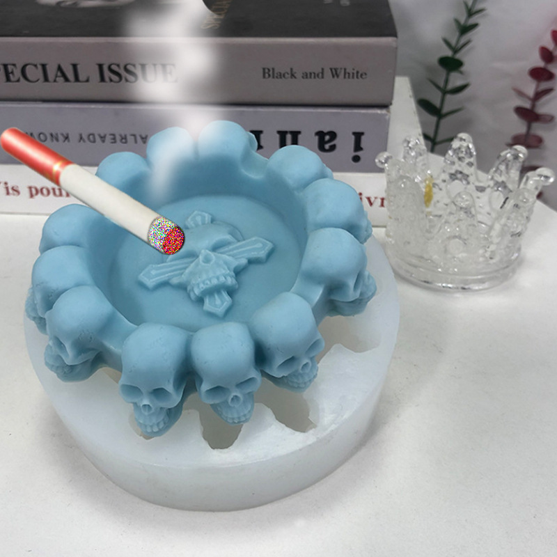 Asbak tengkorak semen plester silikon cetakan diy Halloween tengkorak asbak lilin epoksi cetakan