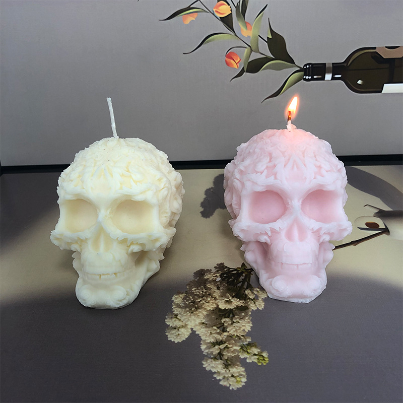 Cetakan silikon aromaterapi renda tengkorak, cetakan plester tengkorak diy dekorasi cetakan silikon Halloween