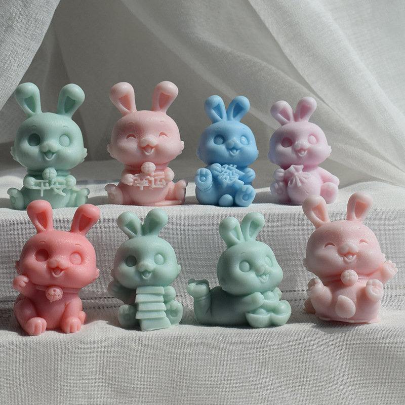 Plester lilin aromaterapi kelinci, cetakan silikon hewan DIY, cetakan Dekorasi batu dupa resin kartun kelinci
