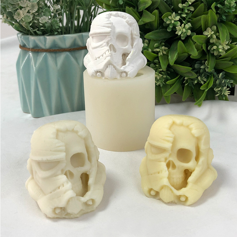 Cetakan silikon aromaterapi tentara badai tengkorak, cetakan lilin Halloween plester epoksi diy
