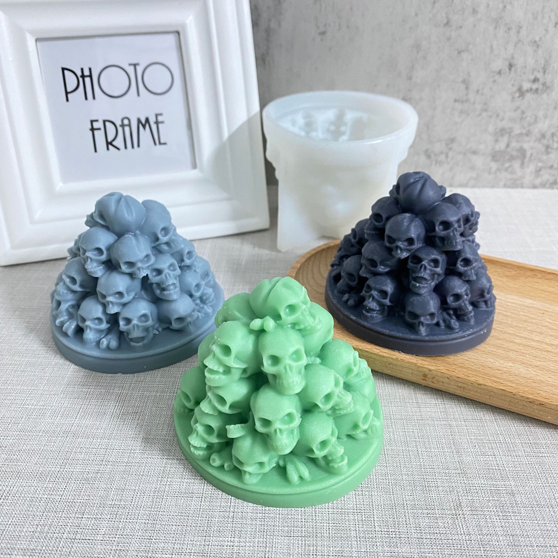 Halloween tengkorak tengkorak lilin silikon cetakan DIY piramida tumpang tindih tengkorak plester lilin dekorasi lem tetes