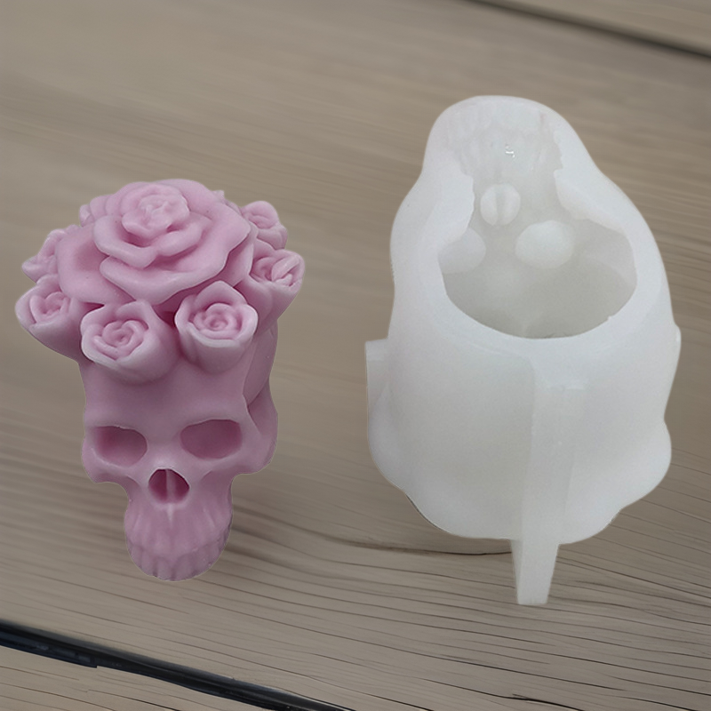 Cetakan silikon aromaterapi tengkorak mawar sembilan, cetakan plester diy dekorasi tengkorak Halloween cetakan epoksi