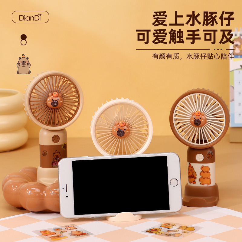 Kartun Capybara Genggam Mini Kipas Angin dengan Braket Ponsel Perjalanan Luar Ruangan Portabel Pengisian Daya Kipas USB Kustom