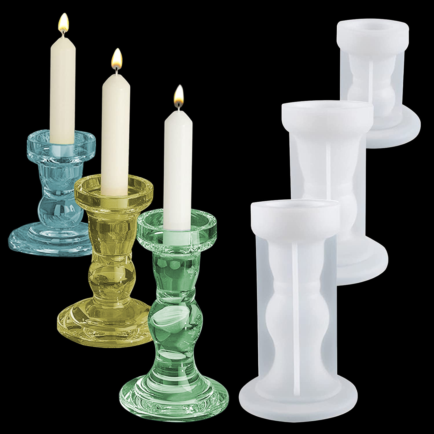 Diy perhiasan epoksi kristal alat penggiling kandil kolom Roman tempat lilin bergaris tiga dimensi tempat lilin cetakan silikon grosir