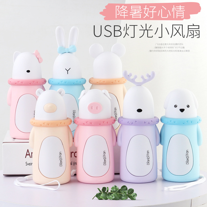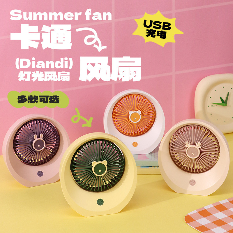 Kartun dicetak LOGO portabel luar ruangan sekolah asrama kantor dilengkapi dengan lampu malam stan promosi kipas angin mini