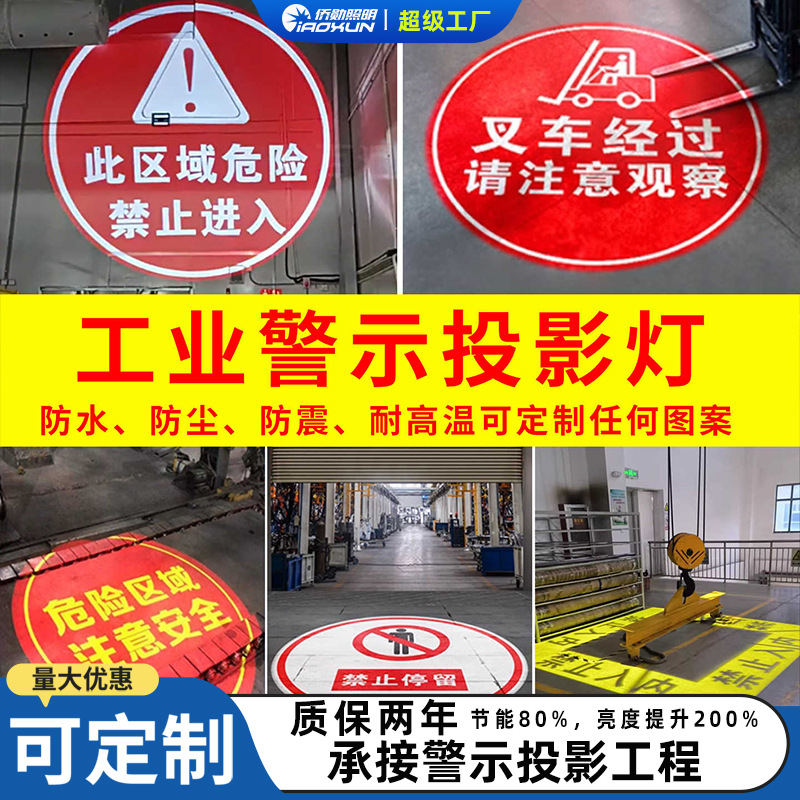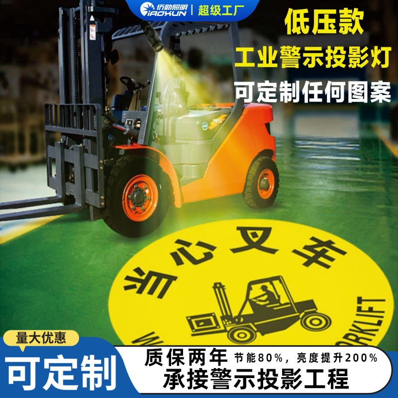 Lampu proyeksi peringatan industri, perhatikan keselamatan, waspada benda jatuh, lampu sorot logo pola, lampu LED tahan debu dan tahan guncangan.