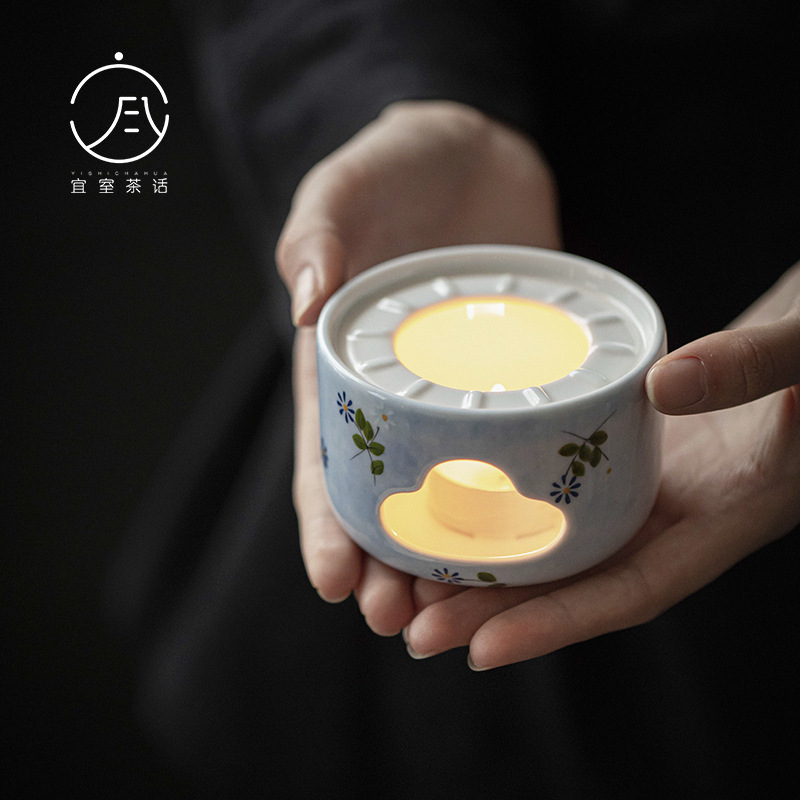 Yifang set teh keramik aster dicat tangan, set teh pemanas lilin Jepang isolasi teh hangat