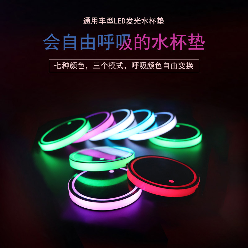 Alas cangkir air LED mobil, lampu depan mobil pola alas cangkir air dapat diubah warna-warni pengisian baterai bawaan