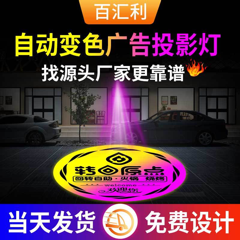 Pola logo lampu proyeksi penuh warna yang berubah warna, iklan yang disesuaikan, teks lantai komersial toko berputar dalam ruangan luar ruangan