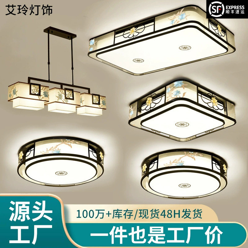 Lampu langit-langit gaya Tiongkok, lampu ruang tamu kayu padat antik persegi panjang belajar kamar tidur led sederhana gaya China 5213