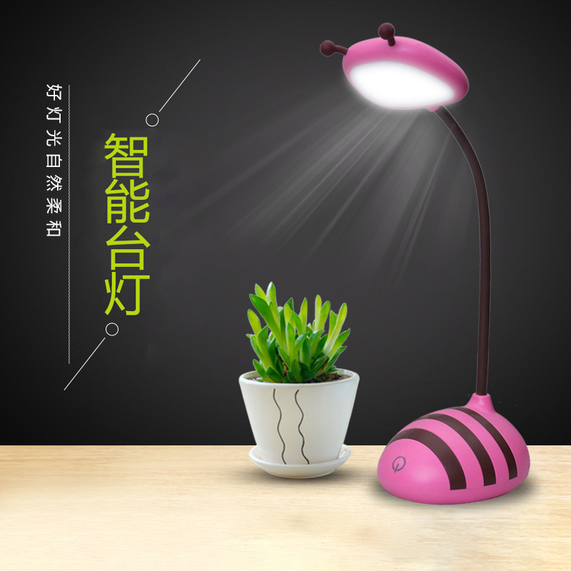 Lampu meja pintar siswa, pemasok cahaya lembut lampu meja peredupan sentuh kartun lebah kreatif lampu meja isi ulang USB