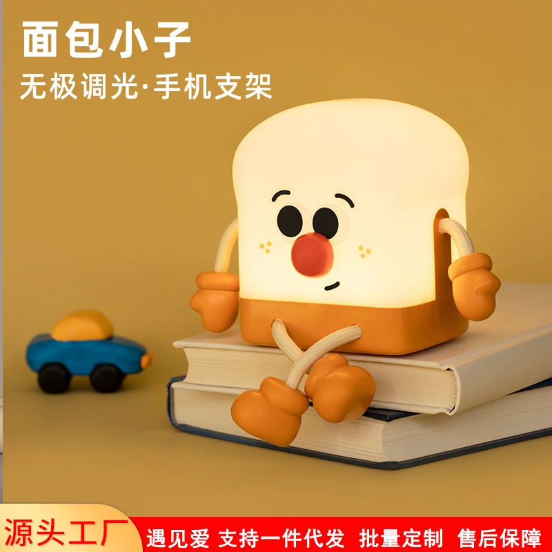 Lampu malam anak laki-laki, dudukan ponsel kartun kreatif untuk tempat tidur samping tempat tidur suasana roti lampu malam