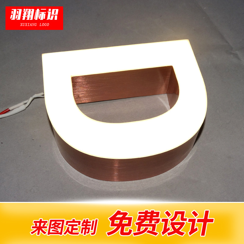 Pintu luar ruangan mini bercahaya kata pabrik lampu LED baja nirkarat tepi resin akrilik papan iklan