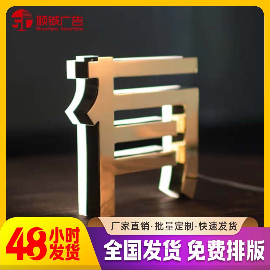 Papan nama iklan pintu dinding, karakter menyala dalam satu akrilik tiga sisi led All-in-one karakter bercahaya banyak warna pilihan