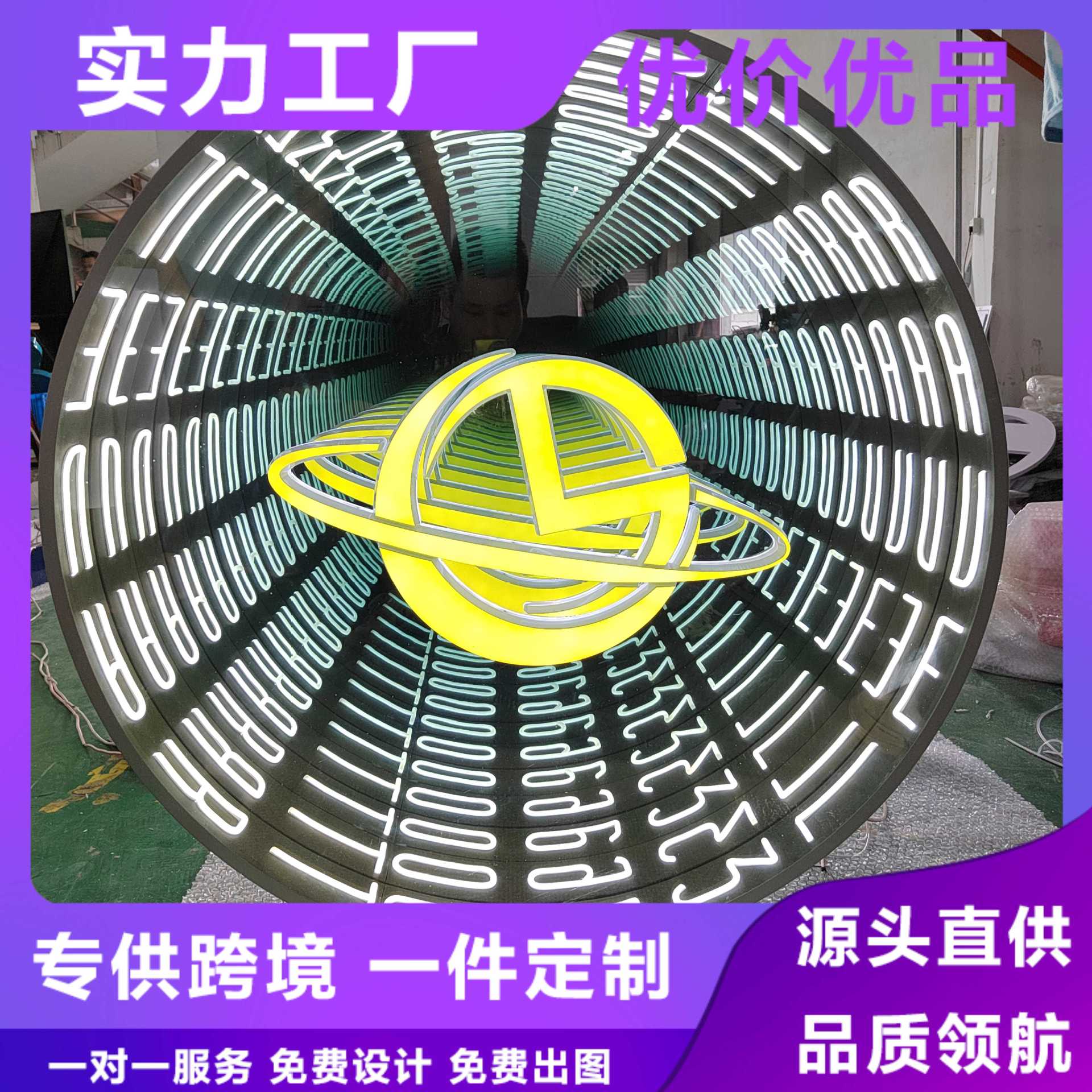 Cross-Strip Cermin LED Stainless Steel Kepala Pintu Unlimited Abyss Tanda Tangan Luar Ruangan Lampu Neon Tiga Dimensi Bercahaya Kata Iklan