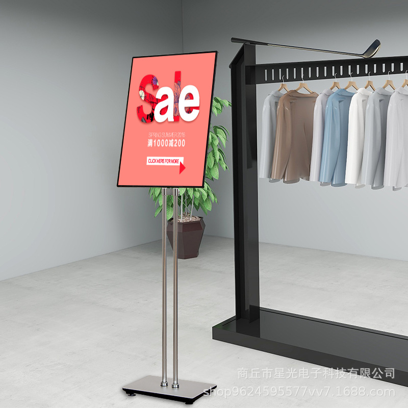Kotak lampu poster lantai tiang ganda LED papan reklame bercahaya pintu berdiri vertikal piring pajangan bergerak piring bercahaya