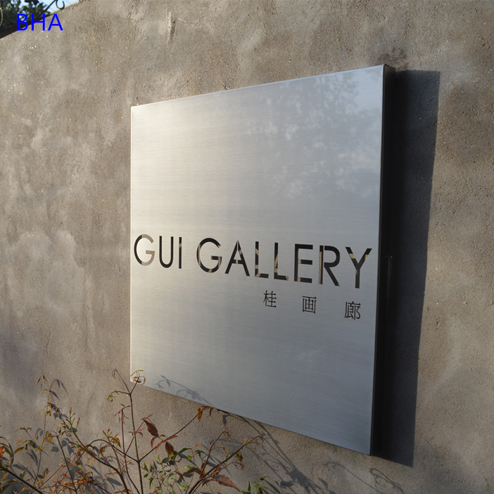 Papan nama pintu stainless steel, karakter besar dua sisi, tiga dimensi, kepala pintu, papan nama lanskap, kata miring