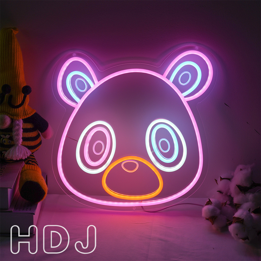 Pemasok lampu dekorasi lintas batas DIY, bentuk neon beruang karakter kartun ukiran piring akrilik