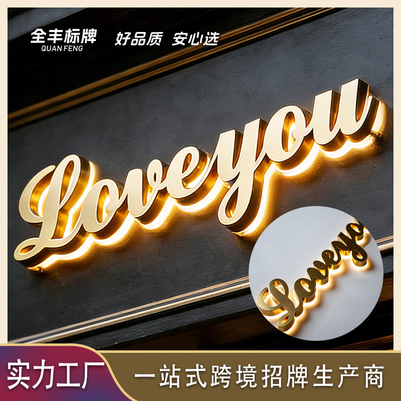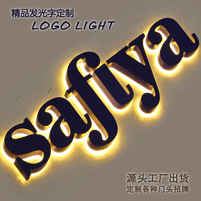 Kotak lampu iklan karakter bercahaya Guangdong papan nama karakter akrilik kembali bercahaya mini karakter pintu papan nama logam bercahaya