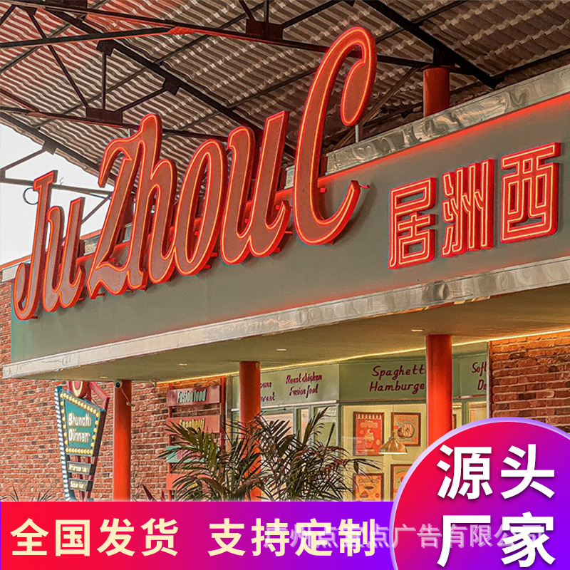 Papan nama pintu baja tahan karat, papan nama LED luar ruangan, papan nama iklan restoran, huruf lampu neon, papan nama bergaya Amerika.