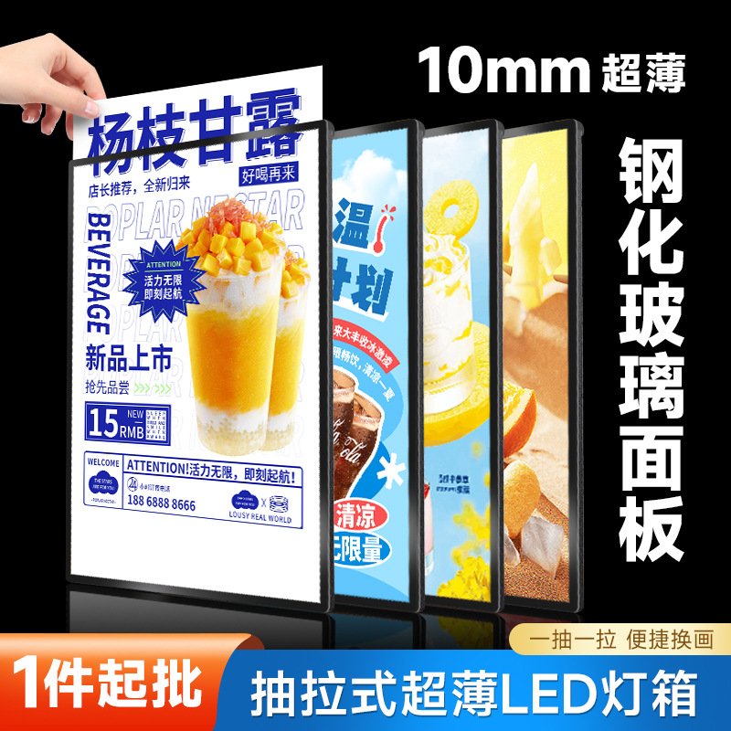 Kotak Lampu Gambar Gambar Super Tipis Papan Iklan Kaca Tempered Papan Iklan Teh Susu Tipe Dinding Papan Tanda Pesan Makan Menu Bercahaya LED