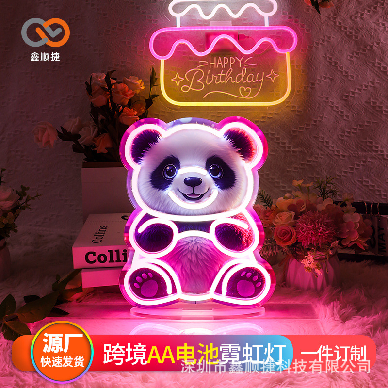 Cross-Border New New Baterai Lampu Neon Kustom Selamat Ulang Tahun Tanda Tangan Lampu Neon Karakter Kreatif Bentuk Dekorasi