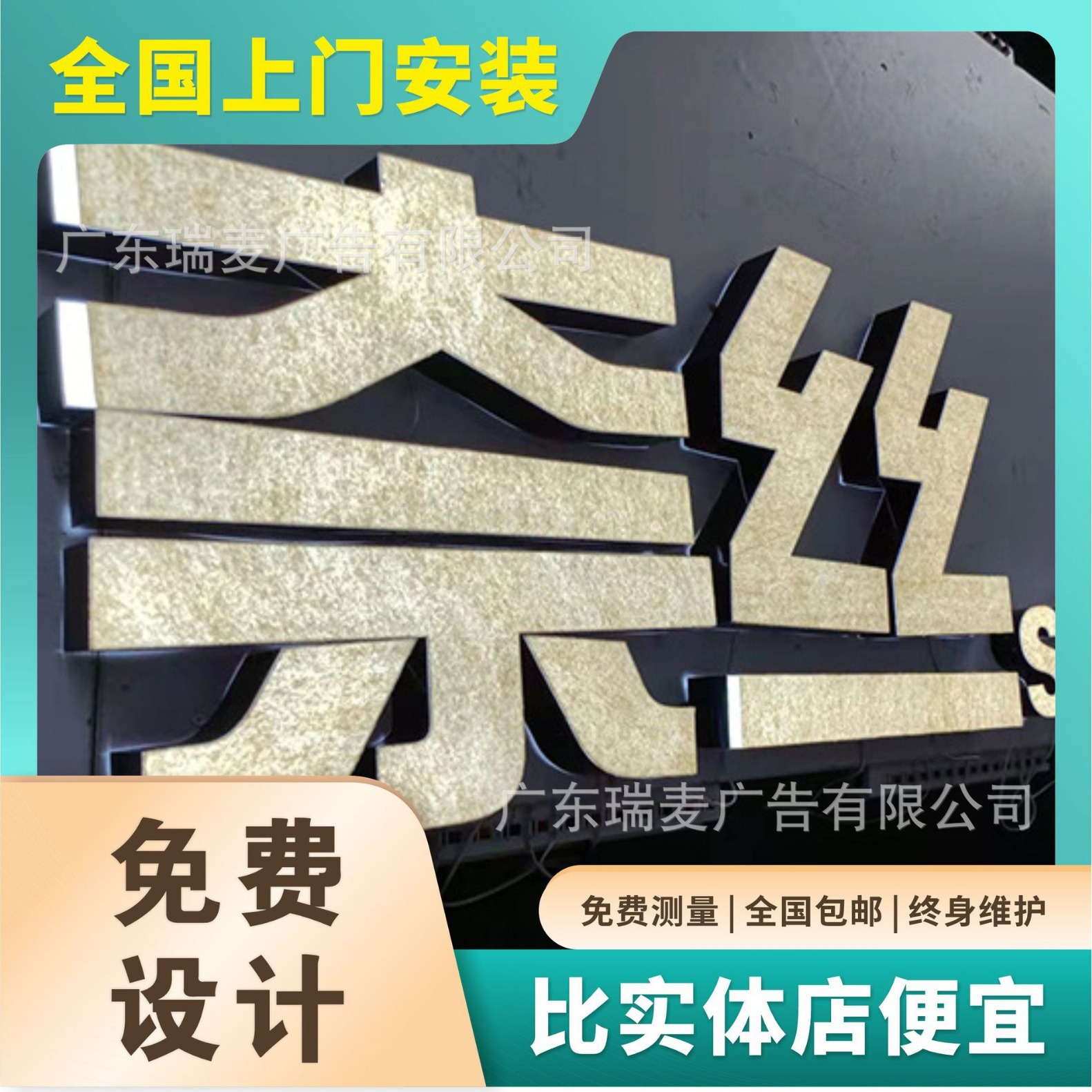 Papan nama pintu stainless steel, karakter besar dua sisi, tiga dimensi, kepala pintu, papan nama lanskap, kata miring