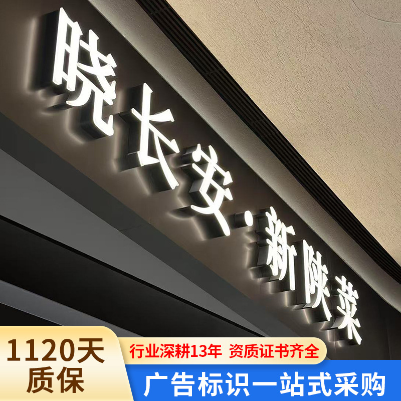 Papan reklame pembuatan pintu bercahaya kembali baja tahan karat luar ruangan papan reklame kata mulus akrilik kata mini kata logam