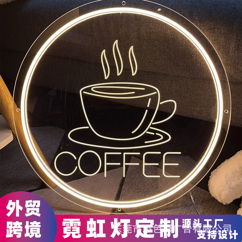 Kopi neon akrilik mengambang ukiran karakter bercahaya USB Amazon perdagangan luar negeri 3D seni kopi 5V lintas batas