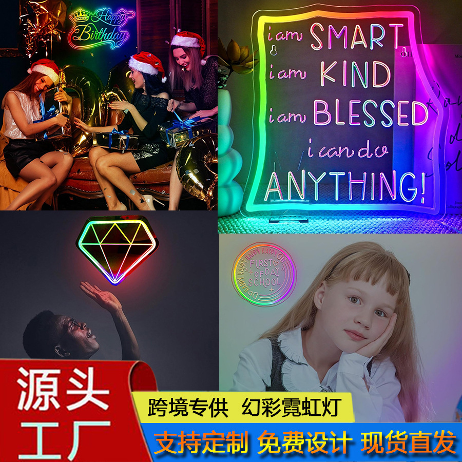 Kustomisasi pola huruf bahasa Inggris dekorasi suasana proposal karakter bercahaya artistik kustomisasi pemodelan tema pesta neon