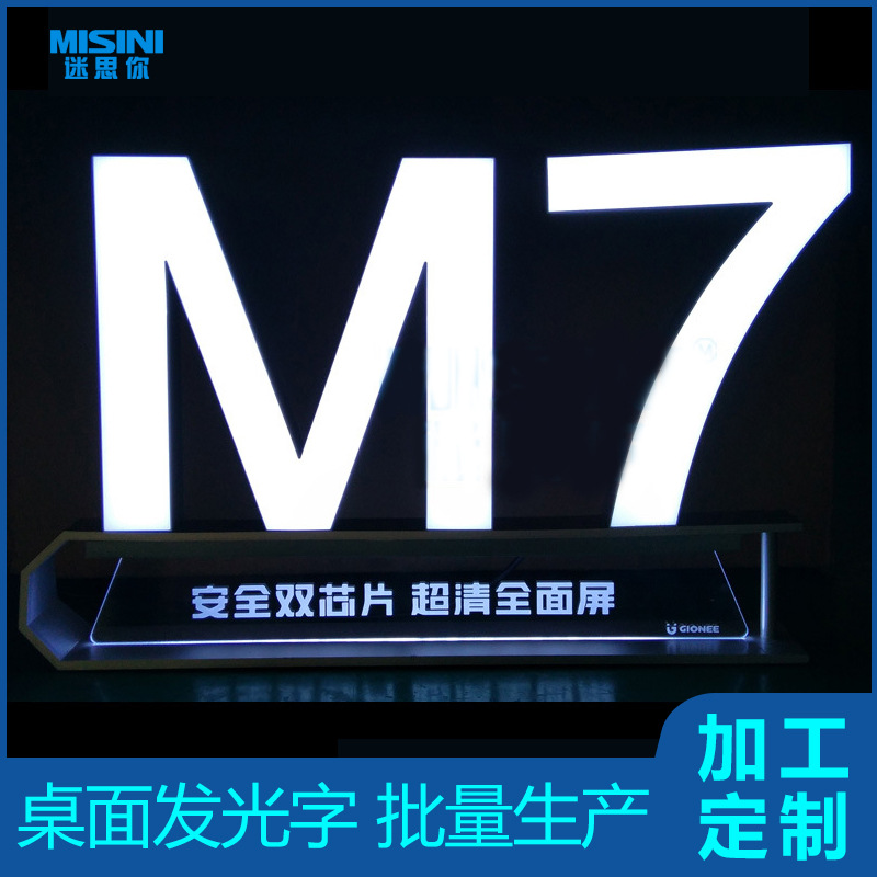 Penjualan langsung dari pabrik Jinli M7 meja bercahaya kata counter injeksi molding desktop Berdiri Plat tiga dimensi kata Billboard produksi