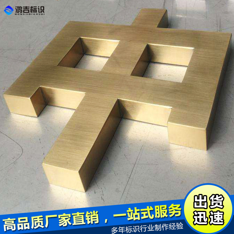 Desain karakter bulat titanium kustom dan kepala pintu produksi kata khas permukaan drum logo jari emas karakter bercahaya baja tahan karat