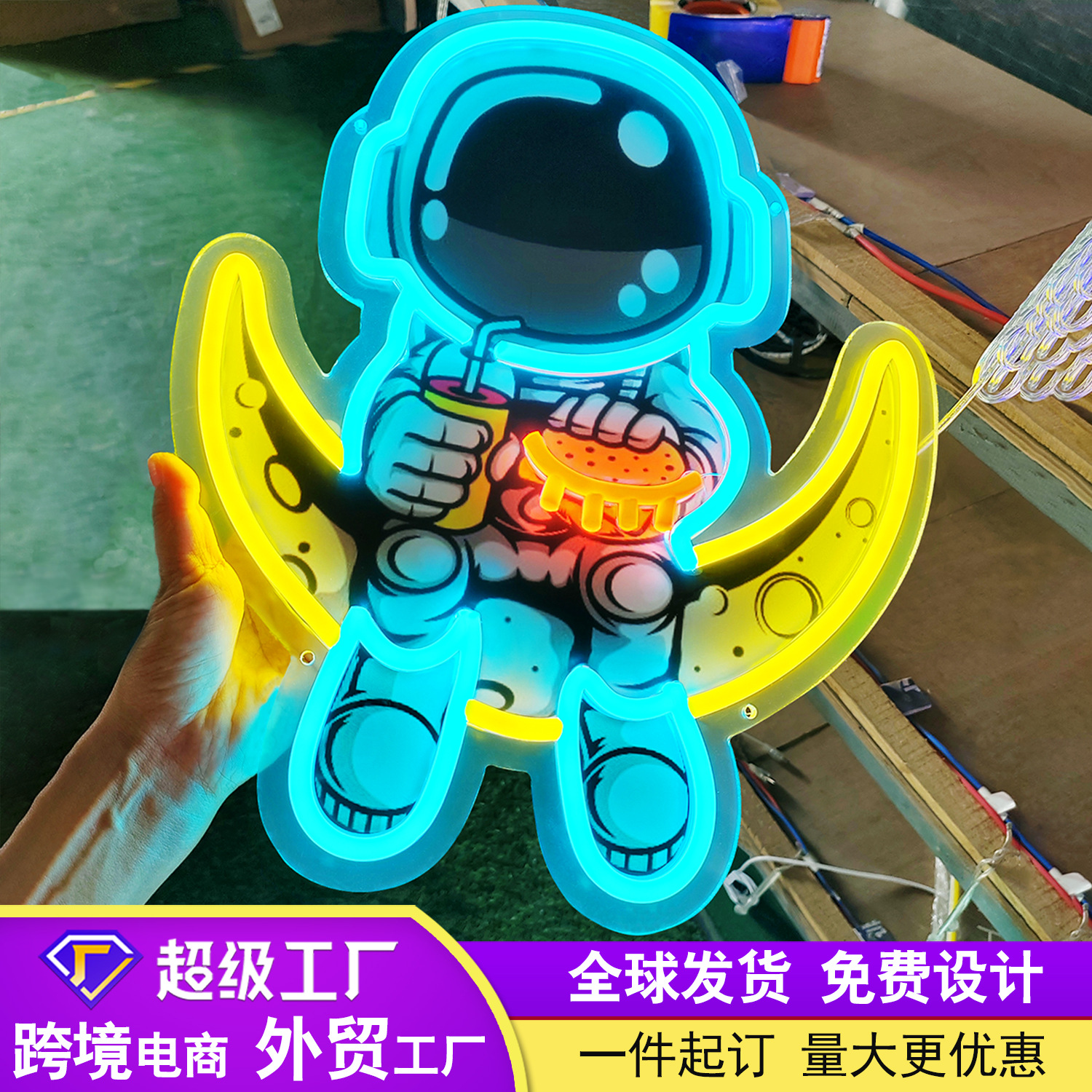 Amazon led lampu neon karakter bercahaya pemodelan kreatif lampu malam astronot akrilik lampu neon papan nama dekoratif