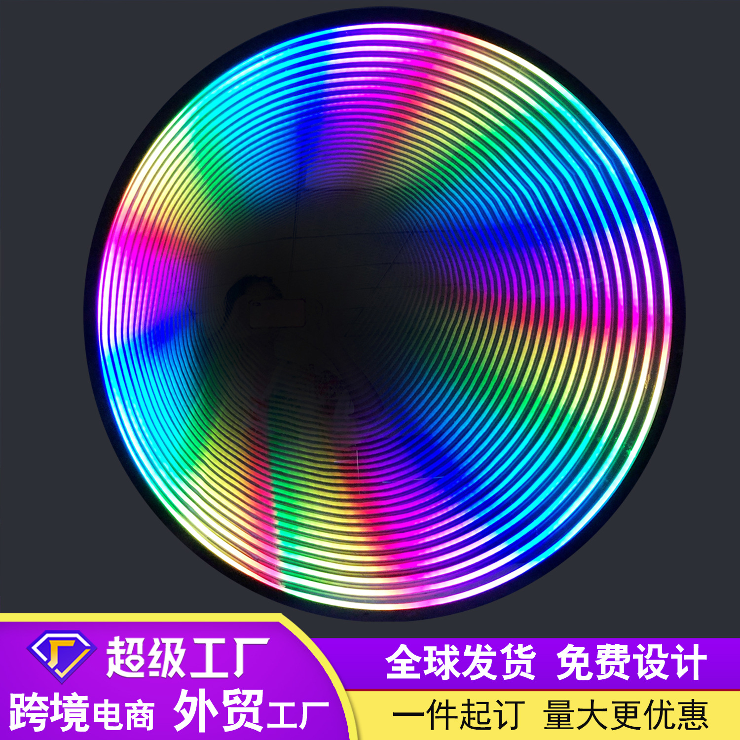 Lampu Neon kata bercahaya lapisan cermin Kolong pelangi bulat cermin tak terbatas 3D cermin terowongan ekstensi cermin LED produksi lampu