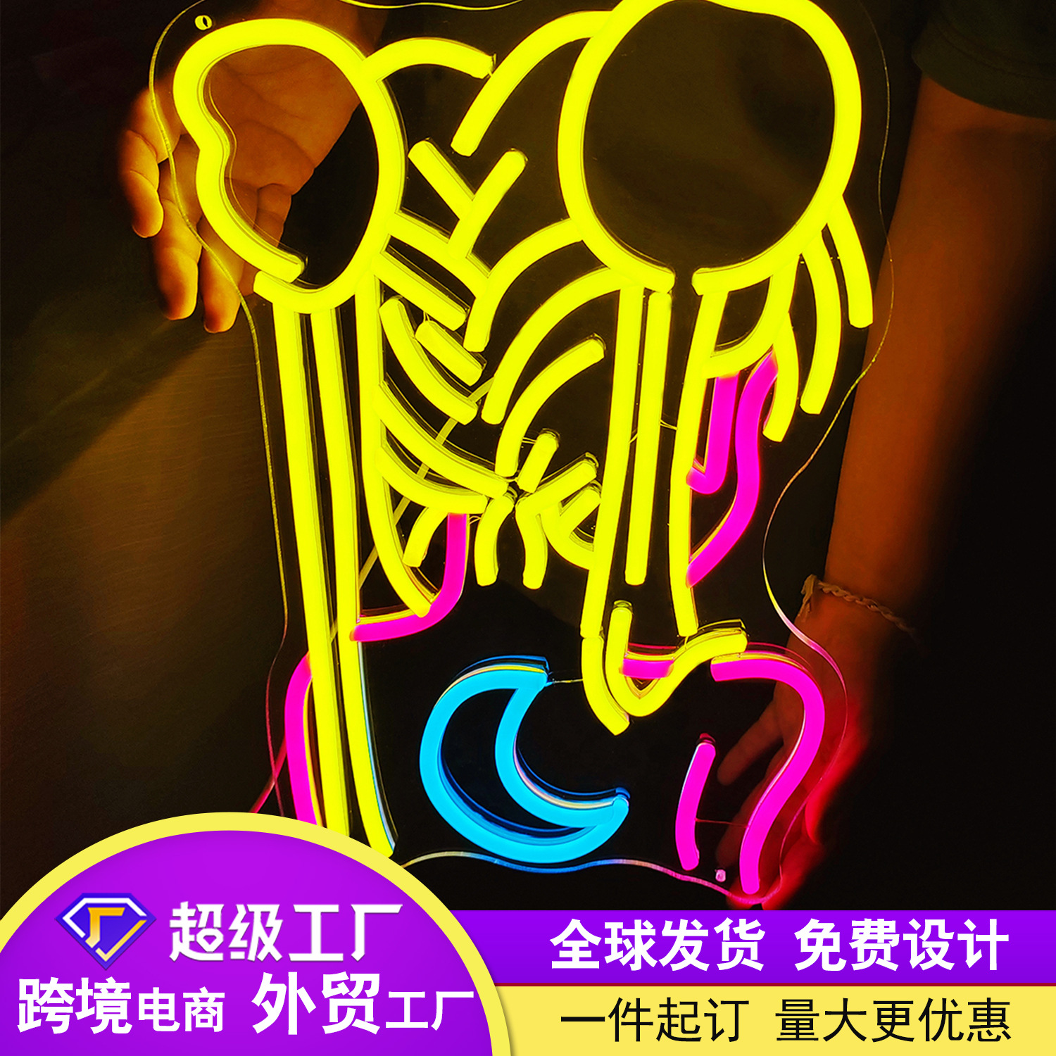 Amazon perdagangan luar negeri led lampu neon karakter bercahaya pemodelan kreatif pola lampu malam akrilik lampu neon produksi