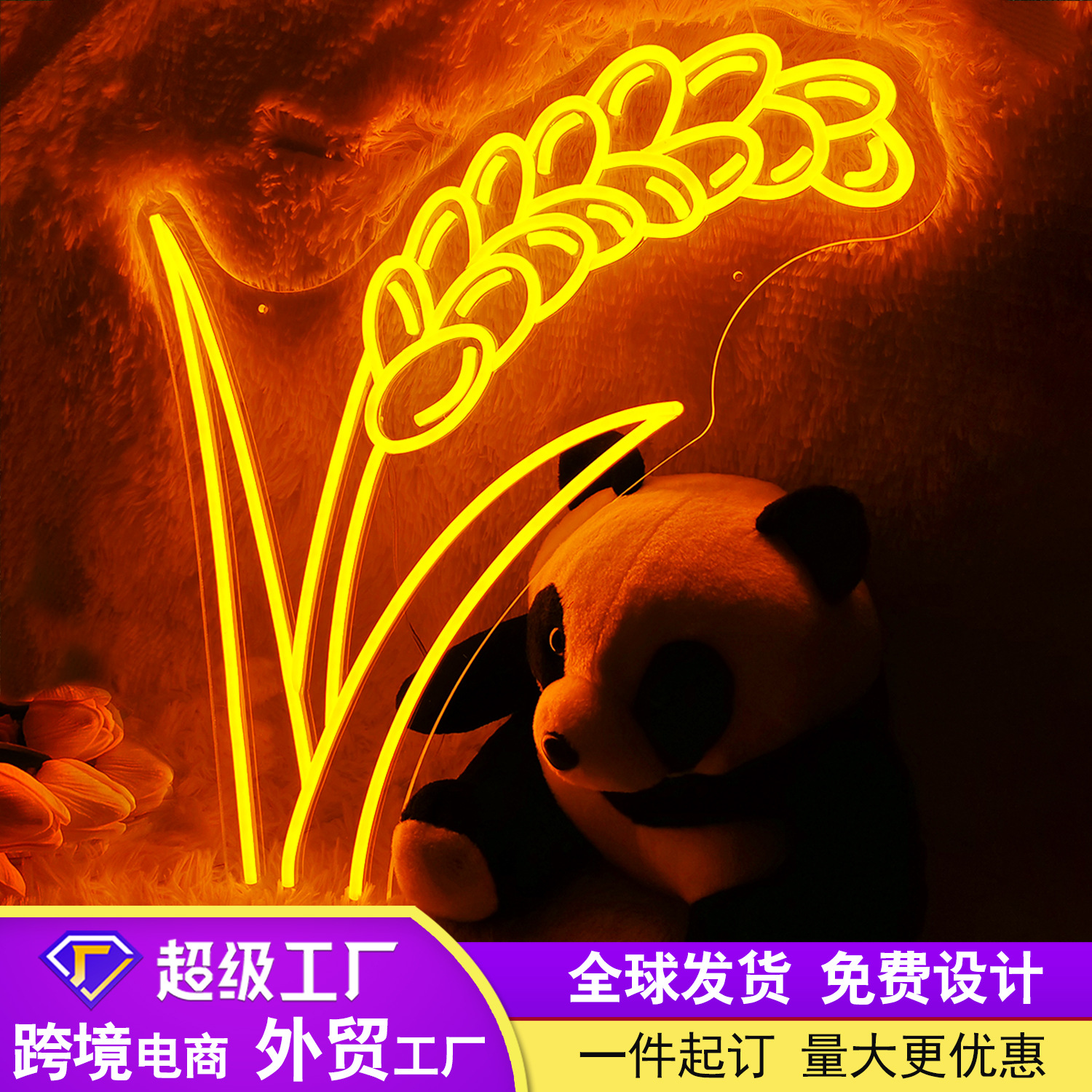 Amazon lampu neon led, karakter bercahaya pemodelan kreatif DIY akrilik telinga gandum tanda lampu neon