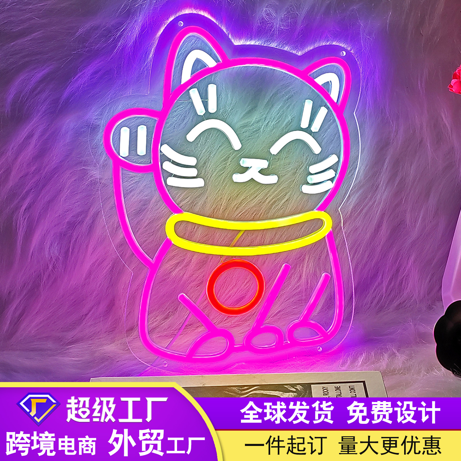 Amazon lampu neon led karakter bercahaya kreatif DIY akrilik Beruntung kucing buatan tangan pemodelan logo lampu produksi pelat