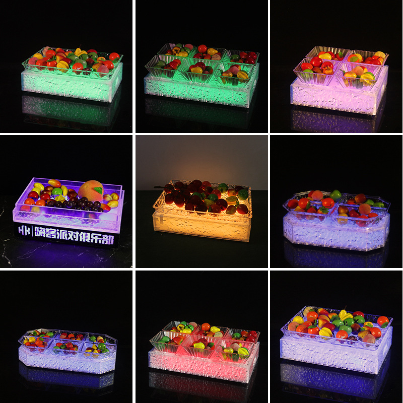 Piring buah akrilik ktv LED, memancarkan cahaya sederhana akrilik piring buah khusus bar piring makanan ringan kreatif pabrik