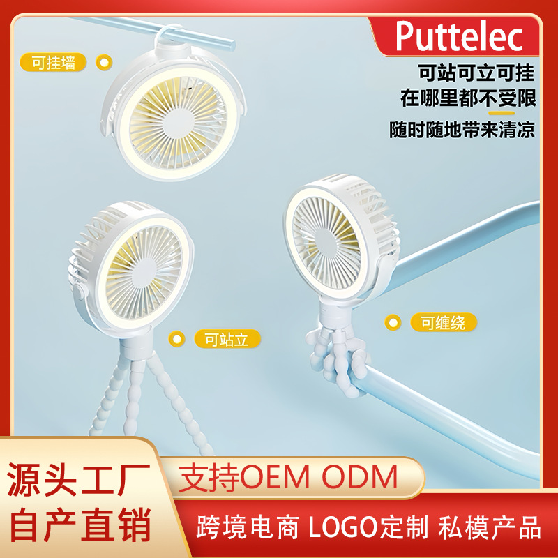 Lintas batas baru kipas kereta dorong genggam USB isi ulang tripod gurita kipas lampu malam LED