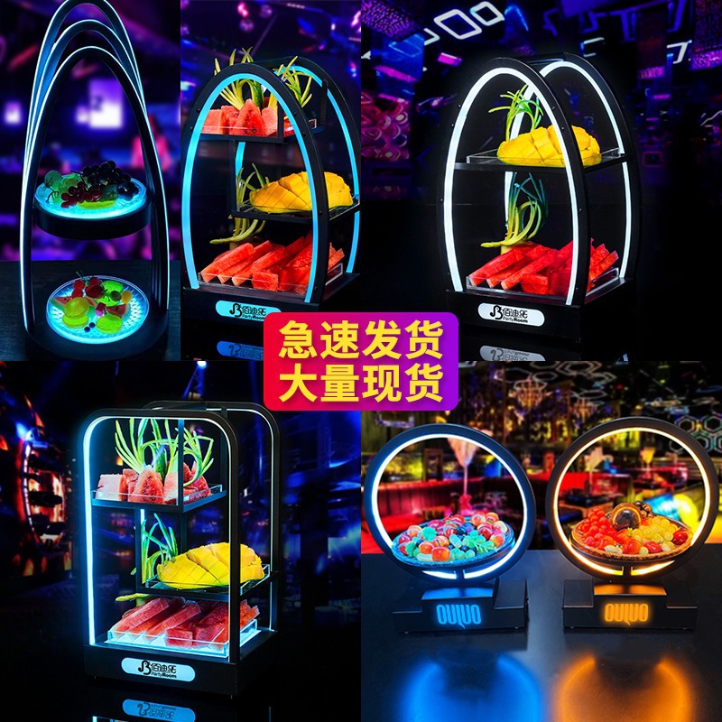KTV piring buah bercahaya, Bar ruang pesta khusus LED dua lapisan rak piring buah pola segel es kreatif penggunaan komersial