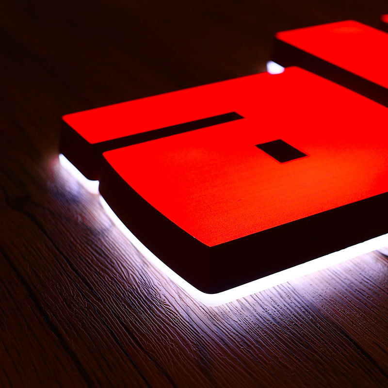 Mini papan nama karakter bercahaya led menyala depan iklan akrilik diukir desktop karakter logo pelat lampu grosir