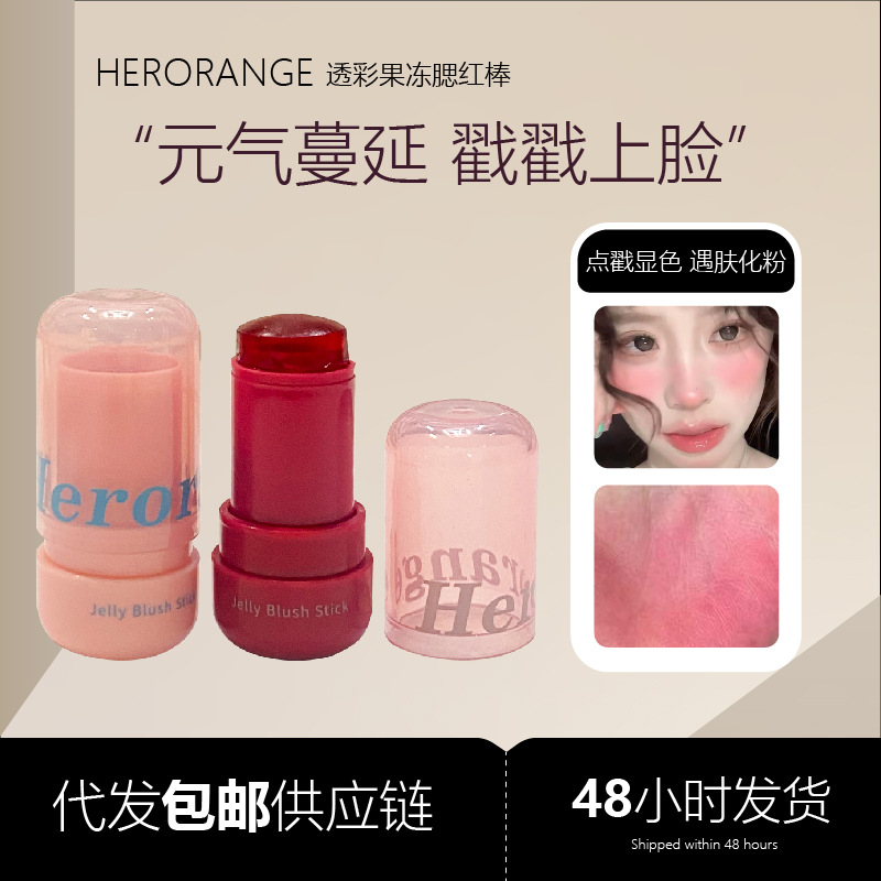 HERORANGE Jelly Blush Stick Melembabkan Cahaya Perona Perona Bibir dan Pipi Alami